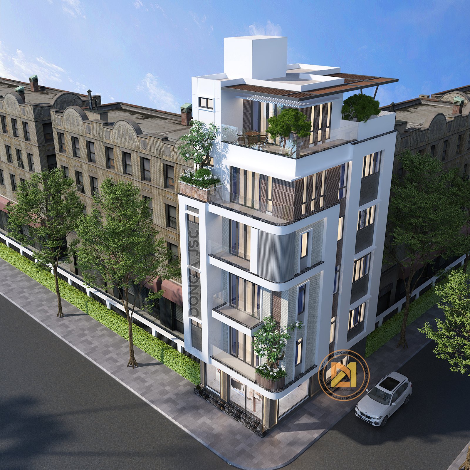 Phối cảnh 3d tòa nhà 6 tầng hiện đại 75m2 KTKSVP-4813