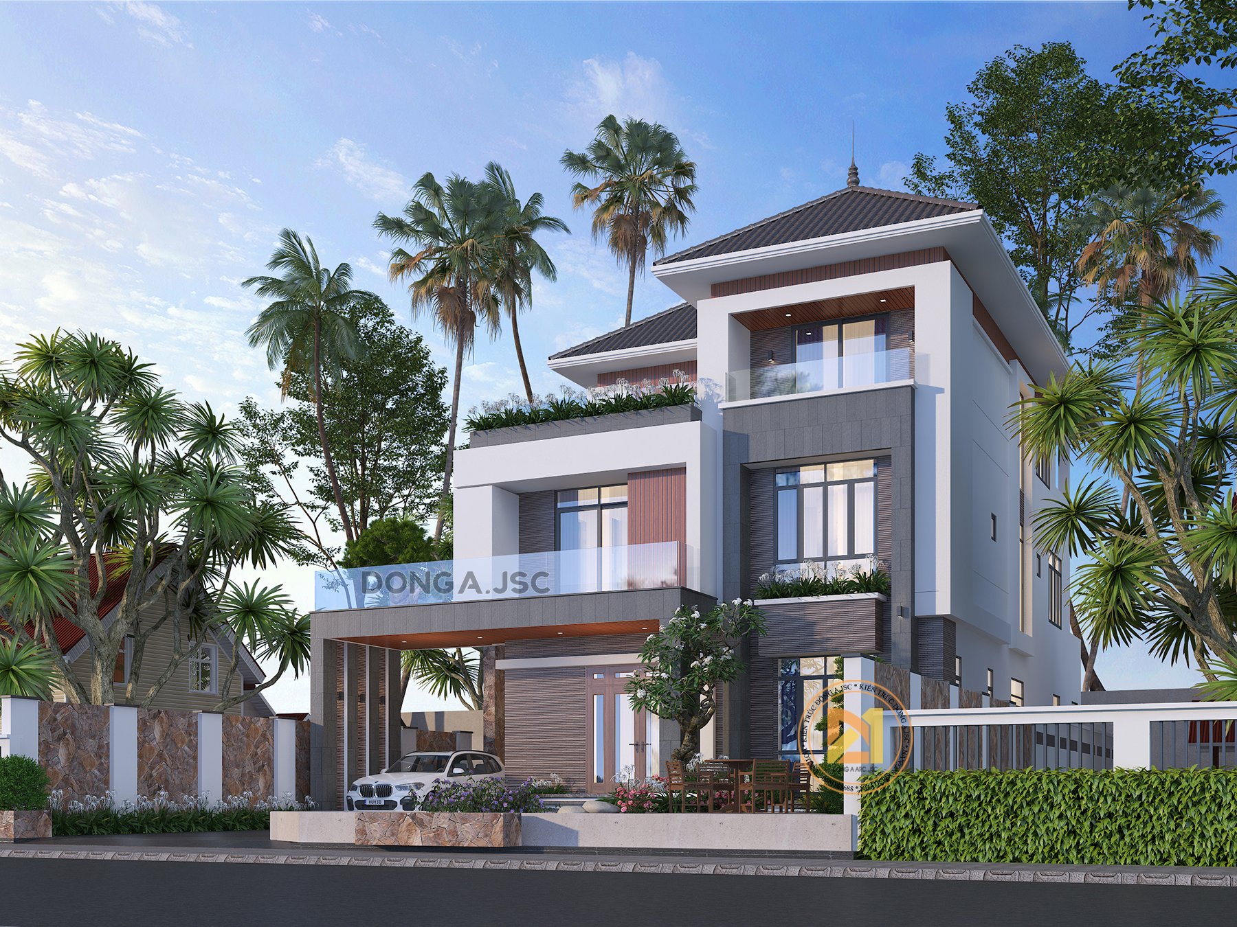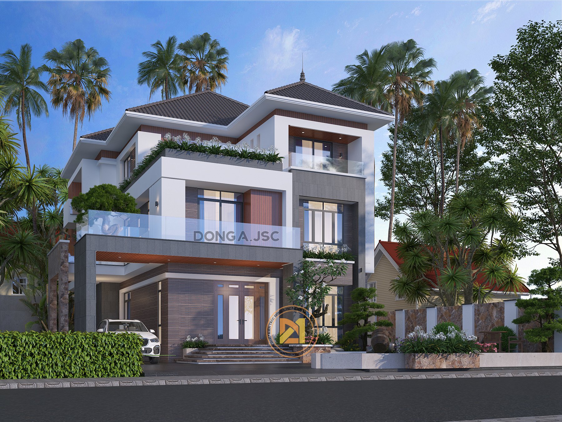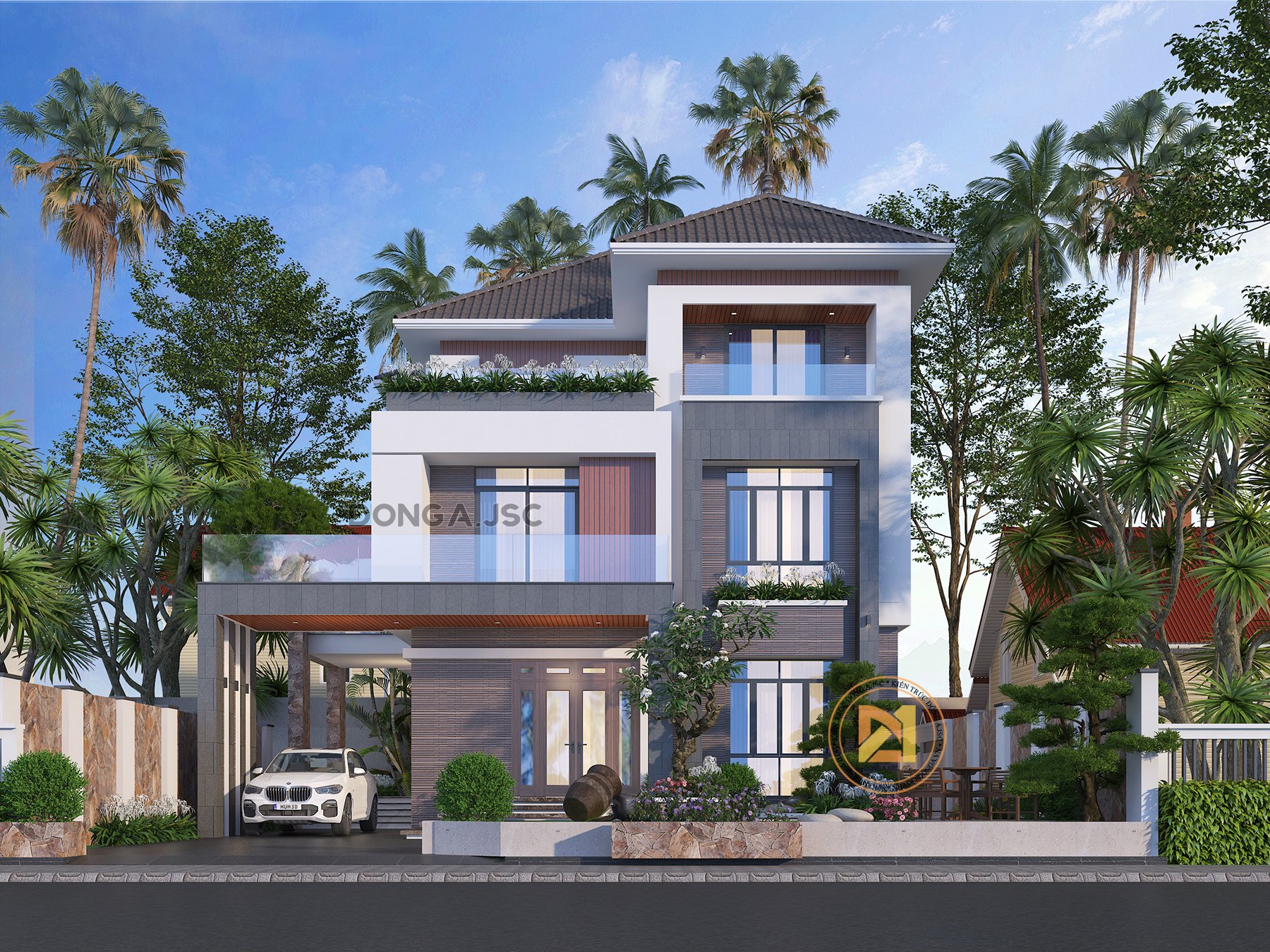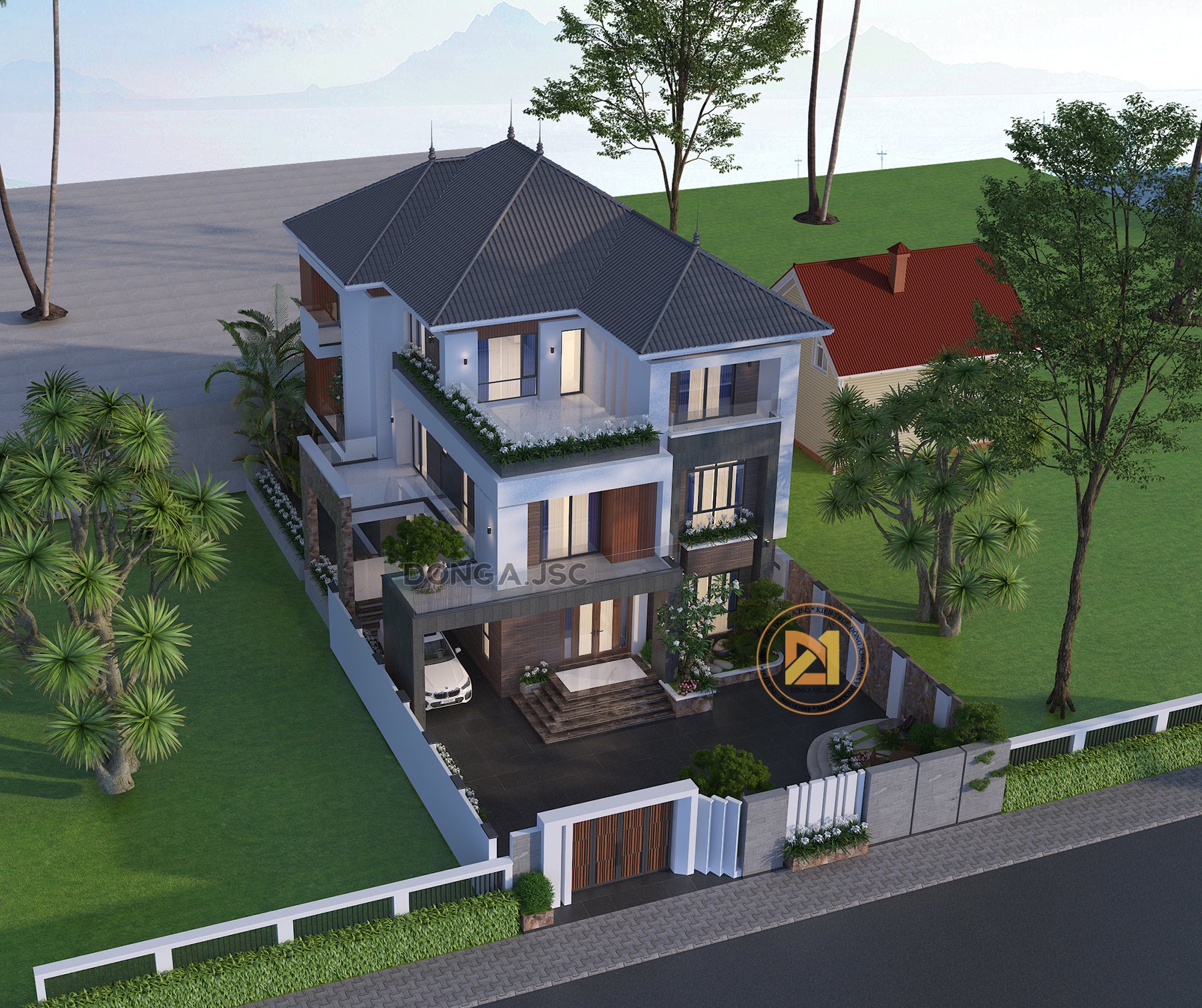 Phối cảnh 3d mẫu biệt thự 3 tầng mái Nhật đẹp đầy sức hút BTHD-4807