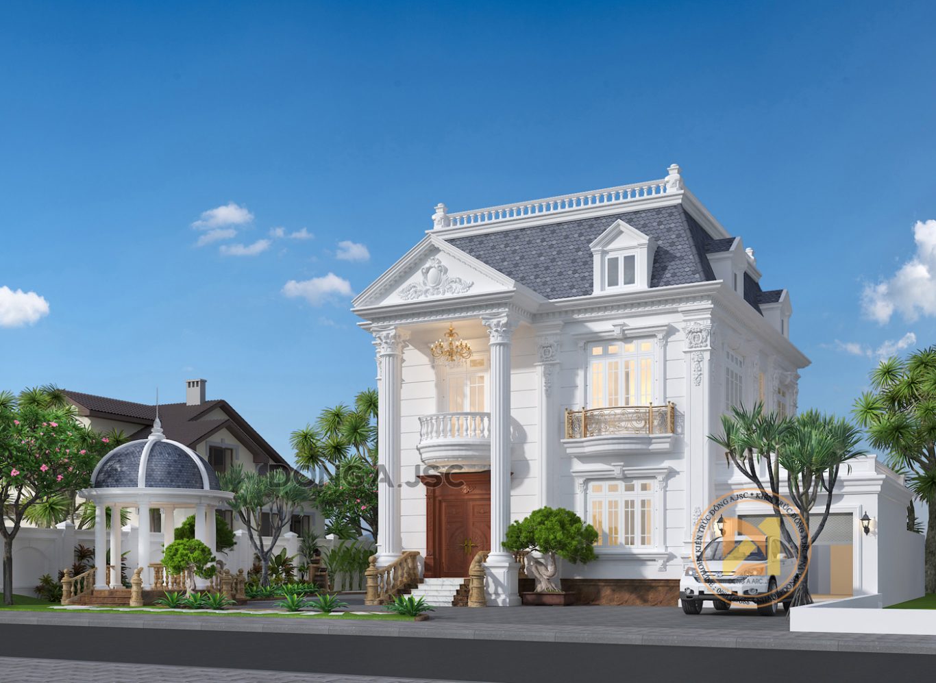 Phối cảnh 3d mẫu biệt thự tân cổ điển 2 tầng ấn tượng nhất BTTCĐ-4751