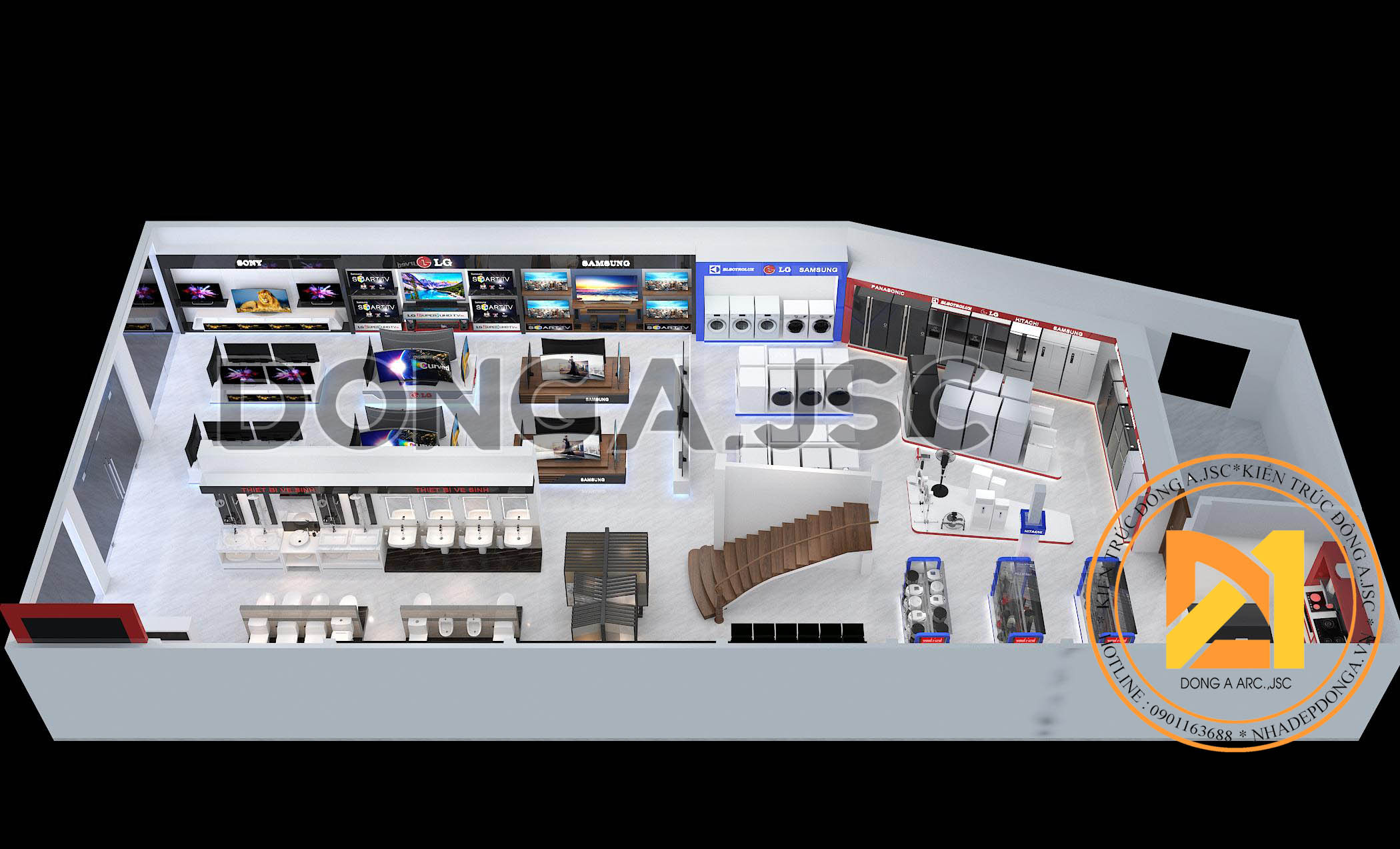 Phối cảnh thiết kế showroom điện máy đẹp sang trọng
