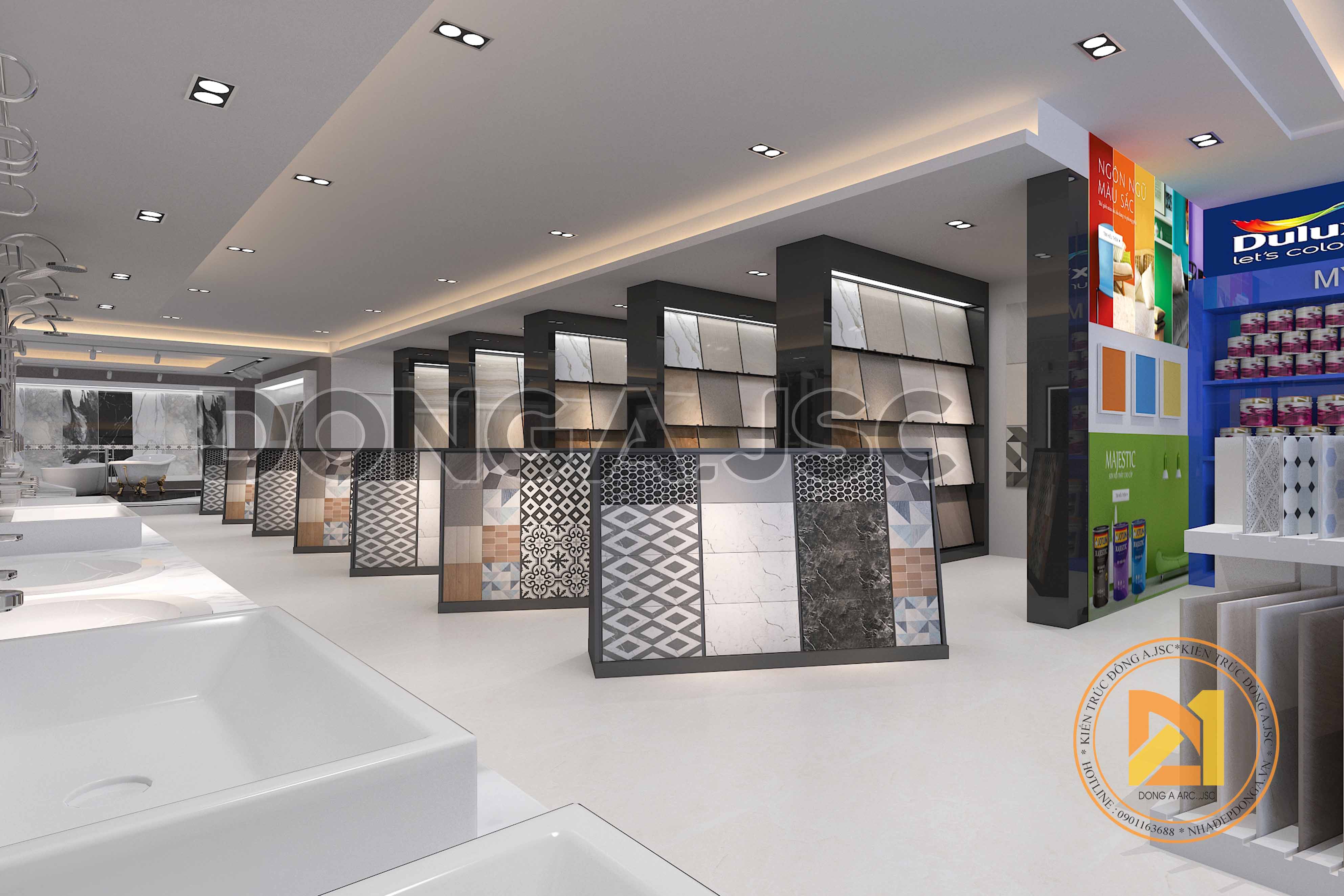 Thiết kế showroom đẹp chưa đủ mà còn phải tạo sự thoải mái cho khách hàng. Các kệ tủ trưng bày được bố trí khoa học, được thiết kế đa dạng, tính công năng cao vừa đảm bảo trưng bày sản phẩm tốt vừa đẹp về thẩm mỹ. Ngay vị trí trung tâm lối vào showroom được KTS Đông A đặt một chiếc bàn. Đây cũng chính là nơi nhân viên tư vấn trao đổi với khách hàng. Thêm một điểm nhấn bằng những chậu cây cảnh nhỏ giúp không gian của bạn trở nên gần gũi nhưng vẫn rất tinh tế.