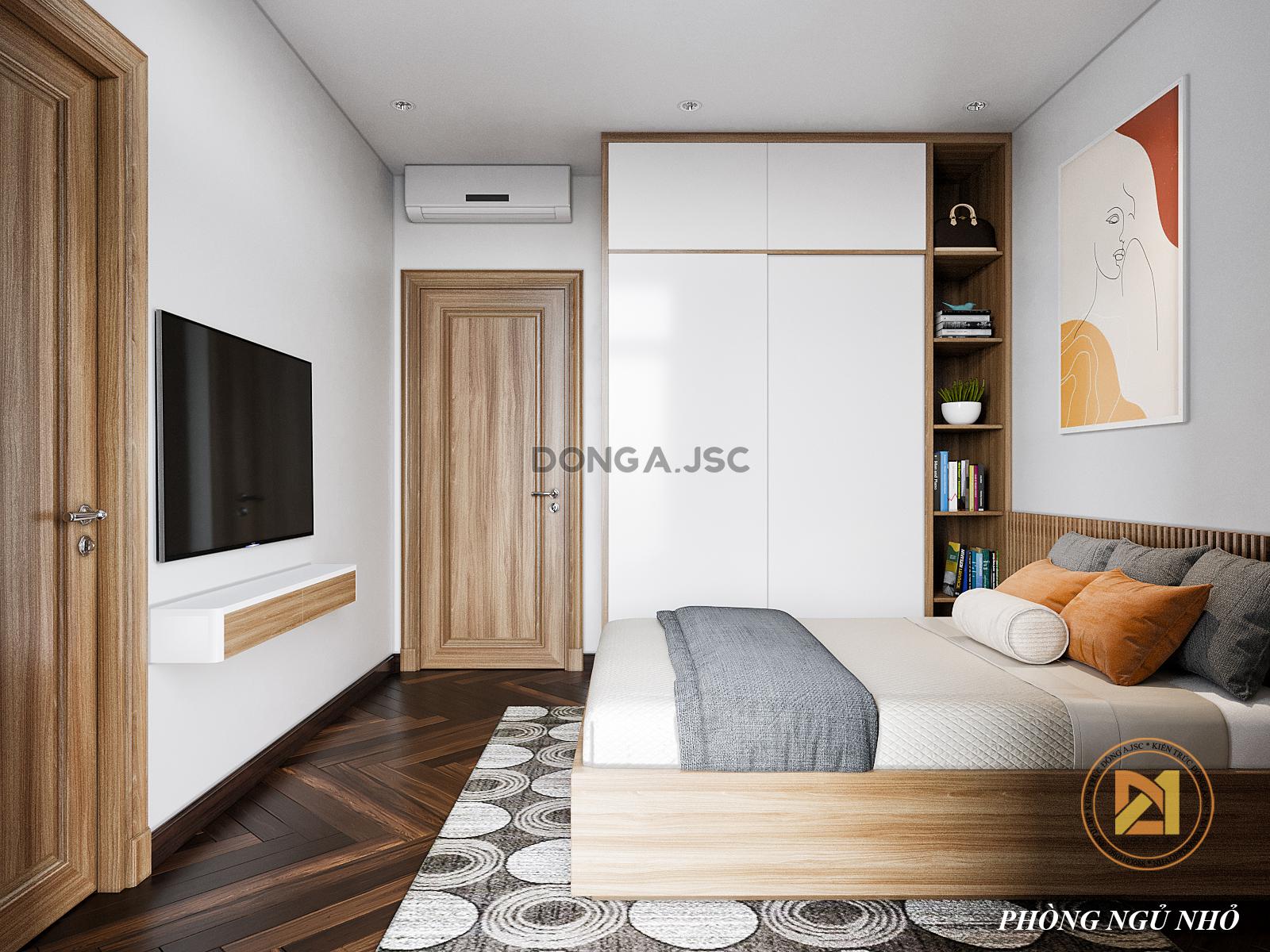 Sự tỉ mỉ trong thiết kế, còn được KTS Đông A thể hiện ở chi tiết giường chân thấp kiểu nhật thiết kế hiện đại nhưng được gia chủ là chị Trang đánh giá cao.